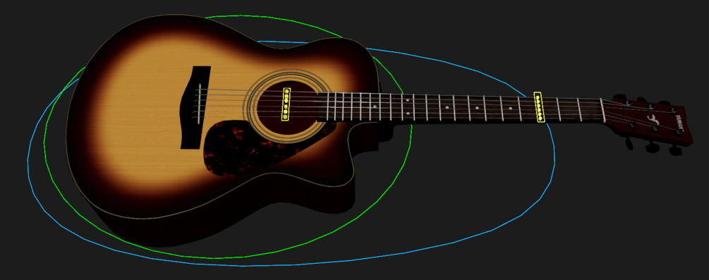 The rig of the guitar with all the textures for your animation. High Polly, the controls on strings in two sides to help you gain the right motion of played strings.